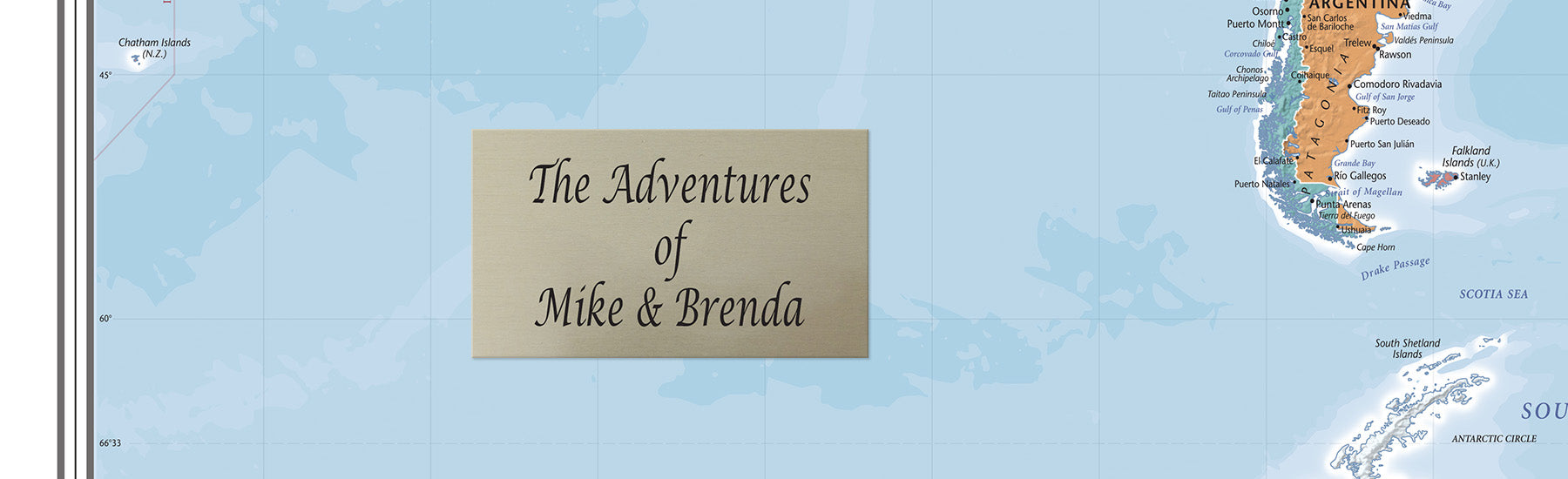 Our Paper Maps can be personalized with a metal plaque that is affixed to the map. Our Framed Canvas Maps, Gallery Wrapped Maps, Large 3 Panel Maps and Canvas Posters will have your personalization printed directly on the map itself, using one of our 9 unique personalization templates.